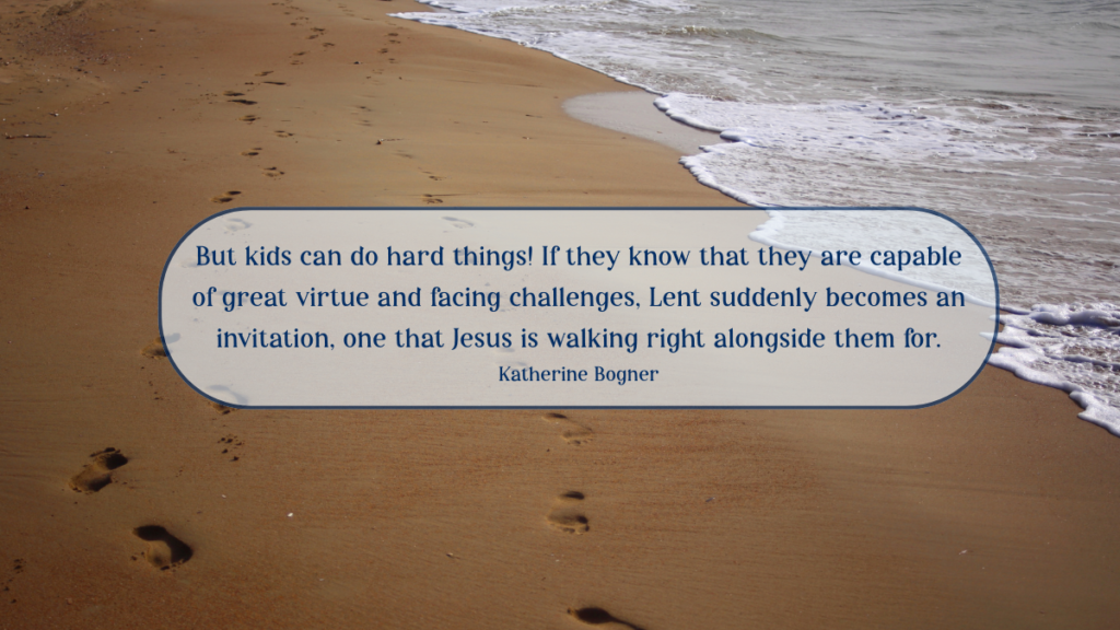 I hope that this book helps children see Lent as an invitation. It’s unfortunately a common mistake for us to think that Lent is too hard for kids to understand, or even for them to dread Lent because they only associate it with fasting. But kids can do hard things! If they know that they are capable of great virtue and facing challenges, Lent suddenly becomes an invitation, one that Jesus is walking right alongside them for. I hope that the catechesis of this book not only helps them understand the practicals of Lent, but more importantly the very Christ-centered nature of this Season of this Liturgical Year.